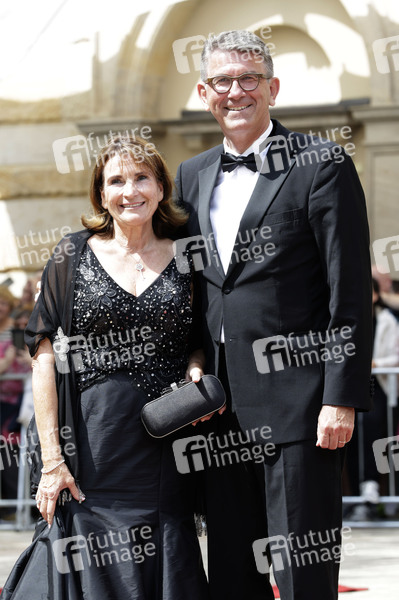Wolfram Weimer mit Ehefrau Christiane Goetz-Weimer bei der Eröffnung der 113. Richard-Wagner-Festspiele 2025 mit der Neuinszenierung von 'Die Meistersinger von Nürnberg' im Bayreuther Festspielhaus. Bayreuth, 25.07.2025
