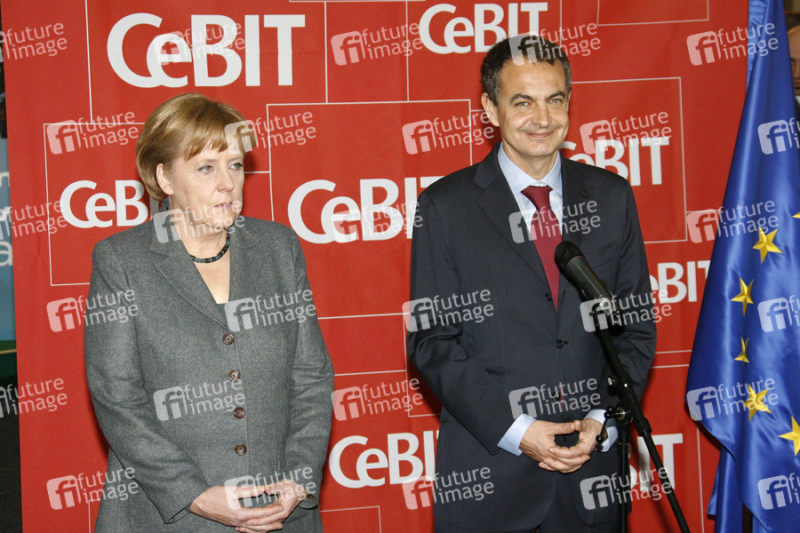 Eröffnungsrundgang von Bundeskanzlerin Merkel und Spaniens Ministerpräsident Zapatero auf der CeBIT 2010 (Centrum der Büro- und Informationstechnik), der weltgrößten Messe für Informations- und Computertechnik auf dem Messegelände in Hannover.