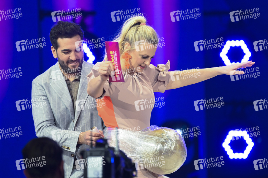 Elyas M'Barek und Barbara Schöneberger bei der Aufzeichnung der ARD-Unterhaltungsshow 'Verstehen Sie Spass?' im Studio H in Berlin-Adlershof. Berlin, 31.03.2022