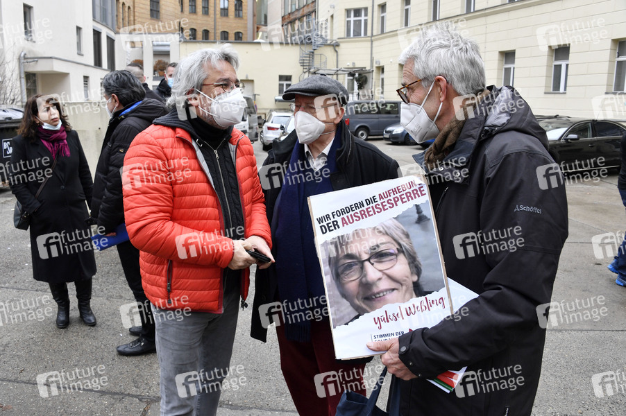 Can Dündar, Bernhard von Grünberg und Jürgen Weßling ( Ehemann von Yüksel Weßling ) bei der Pressekonferenz des KulturForum TürkeiDeutschland zur Solidarität mit den gesamten demokratischen Kräften in der Türkei, insbesondere mit inhaftierten Schriftsteller*innen, Künstler*innen, Journalist*innen, Gewerkschafter*innen und Politiker*innen vor dem Maxim Gorki Theater. Berlin, 23.03.2021
