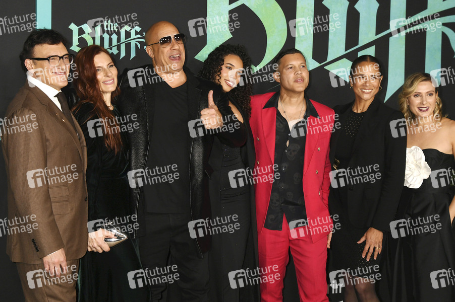 Anthony Russo, Ann Russo, Vin Diesel, Hania Riley Sinclair, Frank E. Flowers, Samantha Vincent und Angela Russo-Otstot bei der Weltpremiere des Amazon Prime Video Films 'The Bluff' im TCL Chinese Theatre. Los Angeles, 17.02.2026