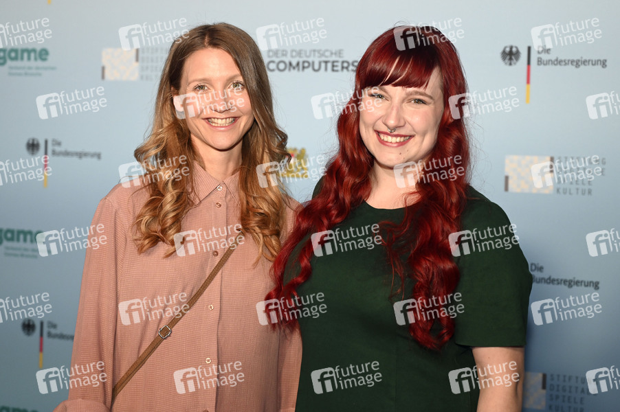 Jana Forkel und Kathrin Radtke bei der Verleihung des Deutschen Computerspielpreises 2022 in der TonHalle. München, 31.03.2022