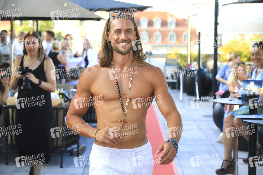 Sasha Sasse bei der Rooftop Fashion Show von Viktoria Varga und Celia von Barchewitz und Charity Gala auf der Dachterrasse Bar Cabana im Innside by Melia. Leipzig, 13.08.2024