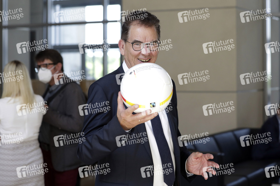 Gerd Müller mit EM-Fußball am Rande der 234. Sitzung des Deutschen Bundestages im Reichstagsgebäude. Berlin, 11.06.2021
