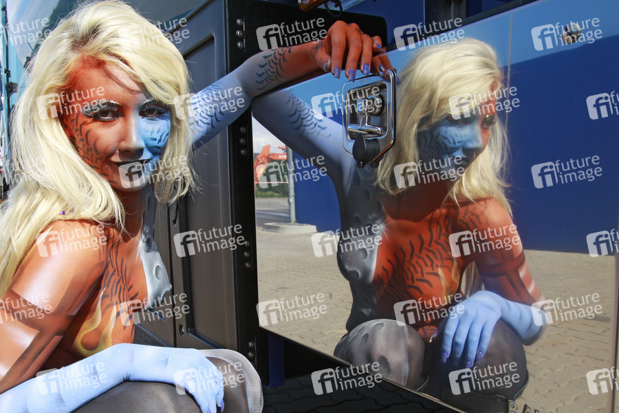 Bodypainting und Photoshooting mit Model Anastasia in einer Auto- und LKW-Waschanlage in Lauenau. Bodypaint Künstler: Jörg Düsterwald