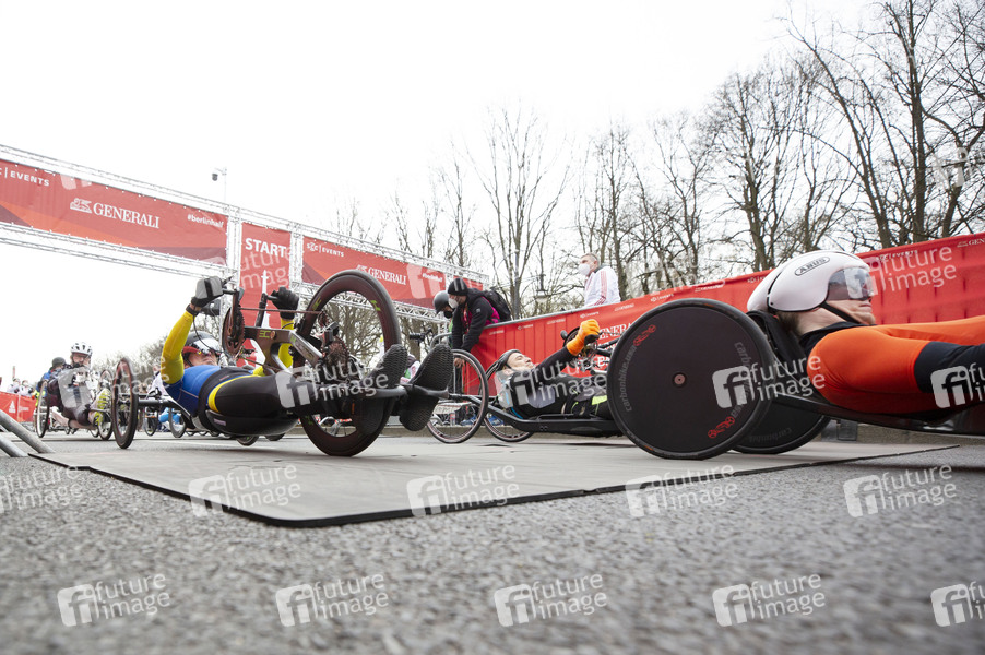 Rollstuhlfahrer auf der Straße des 17. Juni an der Siegessäule beim 41. Berliner Halbmarathon 2022. Berlin, 03.04.2022