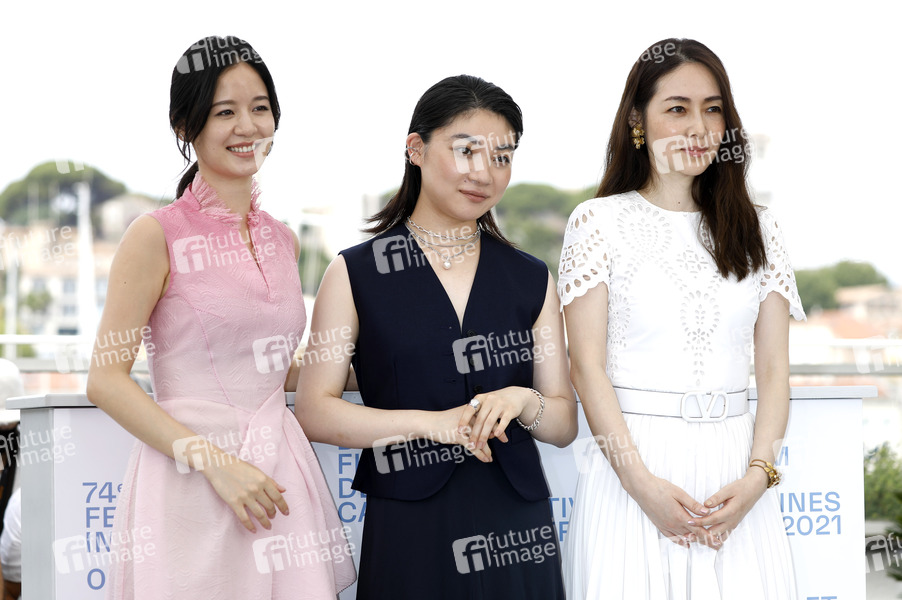 Sonia Yuan, Toko Miura und Reika Kirishima beim Photocall zum Kinofilm 'Drive My Car / Doraibu mai kâ' auf dem Festival de Cannes 2021 / 74. Internationale Filmfestspiele von Cannes am Palais des Festivals. Cannes, 12.07.2021