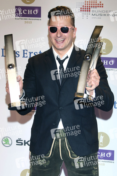 Andreas Gabalier mit den Echo in den Rubriken Volkstümliche Musik und Partner des Jahres bei der 24. Verleihung vom Musikpreis ECHO 2015 in der Messe Berlin im Palais am Funkturm. Berlin, 26.03.2015
