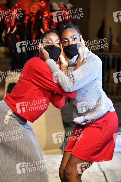 Models bei der Anja Gockel Fashion & Art Show 'Embraceland' im Rahmen der Berlin Fashion Week Autumn/Winter 2021/22 im Hotel Adlon. Berlin, 19.01.2021