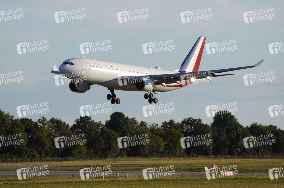 Airbus A330-200 mit Präsident Macron bei der Ankunft zum G7-Gipfel am Flughafen München Franz Josef Strauß. München, 25.06.2022