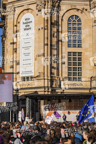 Demonstration unter dem Motto 'Wir sind die Brandmauer' gegen die AfD und den Rechtsruck auf dem Neumarkt. Dresden, 25.02.2024