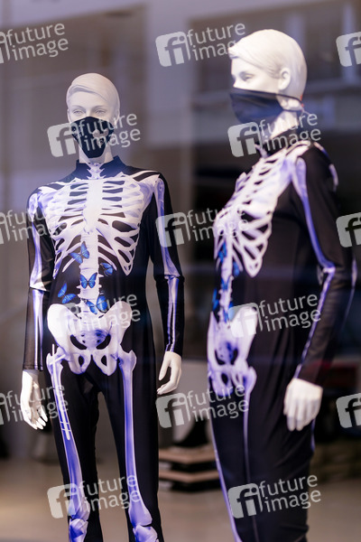 Einzelhändler auf der exklusiven Kölner Mittelstraße haben aus Protest gegen die Corona-Maßnahmen des Bundes, die sie zum Lockdown zwingen, Schaufensterpuppen zu Skeletten umgestaltet und mit Gesichtsmasken versehen. Sie fordern eine gerechtere Verteilung der Corona-Hilfspakete, eine sinnvollere Corona-Politik wie etwa eine stärkere Steuerentlastungen für den Einzelhandel oder eine Mietpreisbremse für Einzelhandelsgeschäfte. (Themenbild, Symbolbild) Köln, 11.01.2021