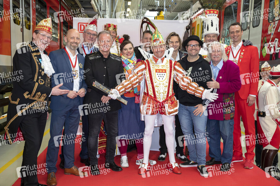 Das Kölner Dreigestirn mit Verantwortlichen und Gästen bei der Präsentation der Karnevals-S-Bahn 2020 im S-Bahn-Werk Köln Nippes. Köln, 31.01.2020