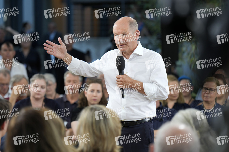 Olaf Scholz beim Kanzlergespräch mit Bürgern in der ufaFabrik. Berlin, 04.09.2024