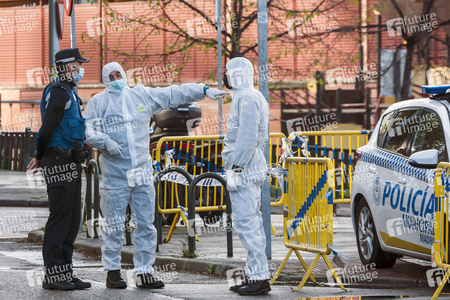 Tag 9 nachdem die spanische Regierung den Ausnahmezustand wegen des Coronavirus COVID-19 erklärt hat. Die Bevölkerung steht 15 Tage zu Hause unter Quarantäne. Die spanische Polizei und Armee überprüfen Menschen, die durch die Straßen gehen. Erlaubt sind Gänge in Krankenhaus, in Supermärkte, Kioske und Apotheken, sowie das Ausführen von Haustieren und der Weg zur Arbeit. Der Palacio de Hielo wird wegen Überlastungen der Bestattungsunternehmen als Leichenhalle eingerichtet. Madrid, 23.03.2020