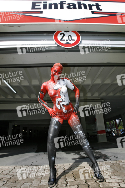 Bodypainting und Fotoshooting mit Model Sabine im Media Markt Hameln, anlässlich des 29. Tag der Niedersachsen. Künstler: Jörg Düsterwald