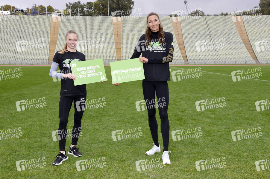 Katharina Trost und Christina Hering beim Fototermin zur sportichen '#WocheChallenge' im Olympiastation München. Unter dem Motto 'Wir können was bewegen!' ruft die Welthungerhilfe zu dieser Challenge auf und bittet um Spenden für eine Welt ohne Hunger. München, 13.10.2020