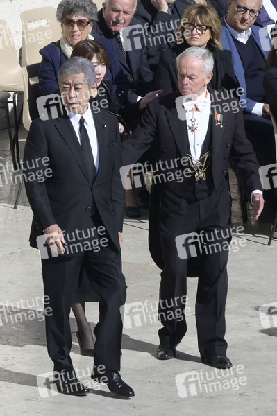 Takeshi Iwaya bei der Trauermesse für den verstorbenen Papst Franziskus auf dem Petersplatz. Vatikanstadt, 26.04.2025