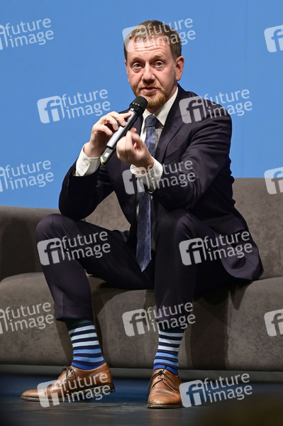 Michael Kretschmer beim Podiumsgespräch 'Escher trifft Kretschmer und Bosbach - Ein Gespräch zu Fragen der Zeit' im Gerhart-Hauptmann-Theater. Görlitz, 21.08.2024