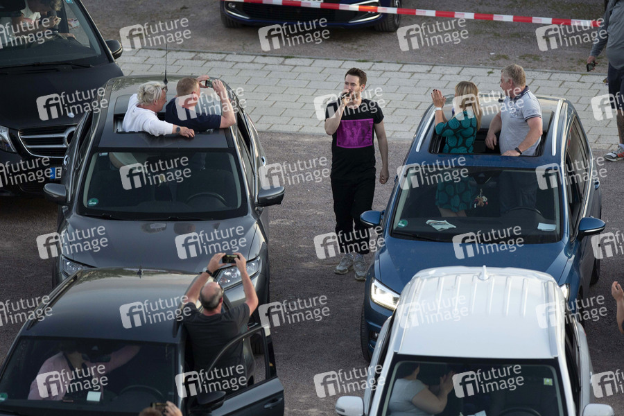 Sänger, Musiker, Gitarrist, Band, Pop, Rock, Musik, Konzert, Auftritt, Bühne, Stage, live, Unterhaltung, Entertainment, Kultur, Corona, Sars-CoV-2, Covid-19, Coronavirus, Coronakrise, Corona-Krise, Corona-Pandemie, Coronamaßnahmen, Corona-Schutz, Kontaktverbot, Mindestabstand, Social Distancing, Abstand, Abstandhalten, Abstandsregel, Auto, Autokonzertreihe, Autokonzert, Auto-Konzert