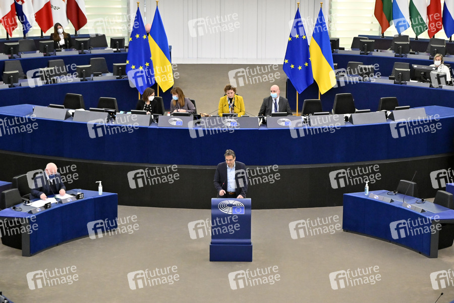 Peter Liese bei einer Plenartagung zum sechsten Bewertungsbericht des Weltklimarats der Vereinten Nationen zum Klimawandel im Plenarsaal des Europäischen Parlaments. Straßburg, 04.04.2022