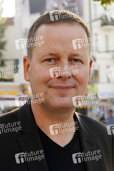 Klaus Lederer bei der Installation eines Großfotos zum 60. Jahrestag des Mauerbaus von Kulturprojekte Berlin und der Stiftung Berliner Mauer am Hermannplatz. Berlin, 13.08.2021