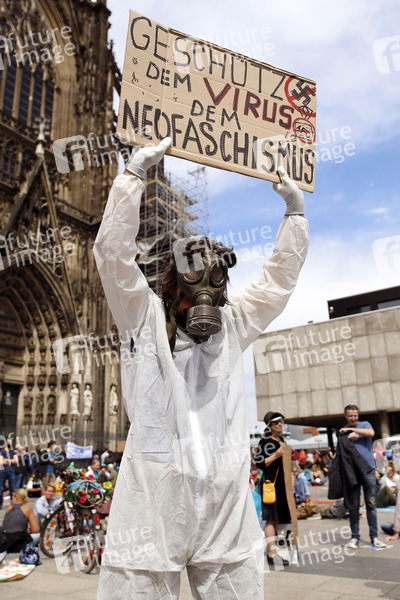Demonstrationen des Bündnis Köln gegen Rechts und Gegner der Corona-Maßnahmen auf dem Roncalliplatz. Köln, 16.05.2020