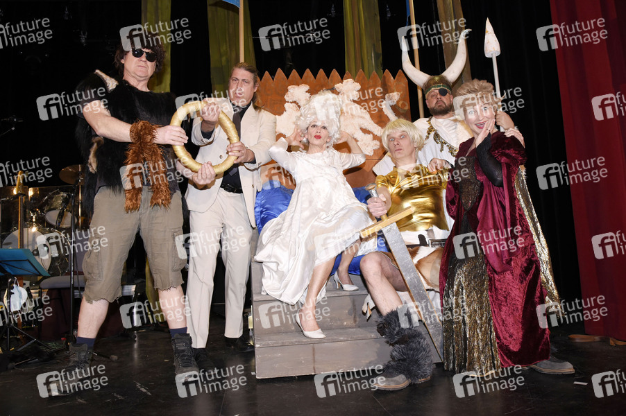 Alexander Liegl, Aron Altmann, Severin Groebner, Gabi Rothmüller, Severin Groebner, Thomas Wenke und Constanze Lindner bei der Generalprobe zum Streaming von 'Siegfried - Götterschweiß und Heldenblut, Ein Germanical' im Kleinen Theater. Haar, 07.03.2021