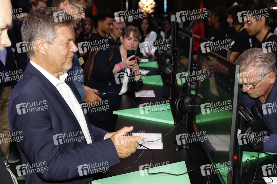 Spiele-Messe, Gaming, Gaming-Industrie, Spieleindustrie, Spielemesse, Gamingindustrie, Player, Spielesucht, Digitalisierung, Zocken, Daddeln, Games, Game, Spiele, PC-Spiele, Computerspiele, Konsolen, Konsolenspiele, Videospiele, Fair, Event, Gamer, Unterhaltungselektronik, Software, Hardware, europäische Leitmesse für digitale Spielekultur, internationale Gaming-Community, Virtual Reality, Browsergames, Spieletrends, game - Verband der deutschen Games-Branche, Politiker, Bundesminister für Wirtschaft und Klimaschutz, Bündnis 90/Die Grünen, Vizekanzler