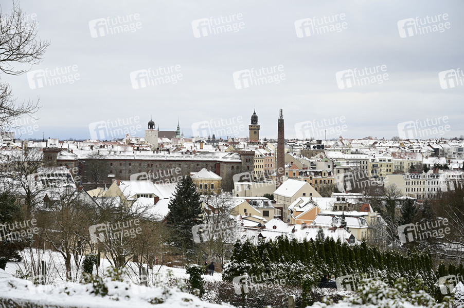 Winter in Görlitz. Blick vom Ölberg aus über die eingeschneite Stadt. Görlitz, 12.01.2025
