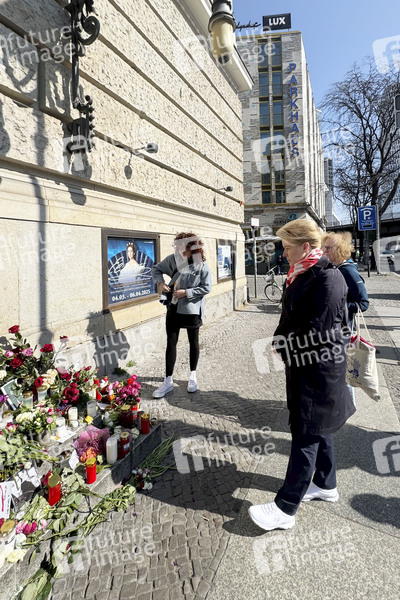 Franziska Giffey am Gedenkort für die verstorbene Rosenstolz-Sängerin AnNa R. am Theater des Westens zu sehen. Die Sängerin wurde 55 Jahre alt. Berlin, 22.03.2025