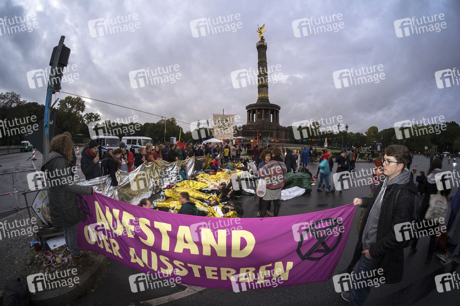 Aktivisten der Klimabewegung 'Extinction Rebellion' blockieren den Großen Stern an der Siegessäule. Berlin, 08.10.2019