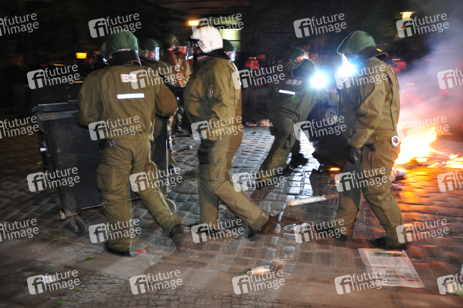 Demo, Demonstranten, Maidemonstration, Polizei, Polizisten, Polizist, Straßenschlacht