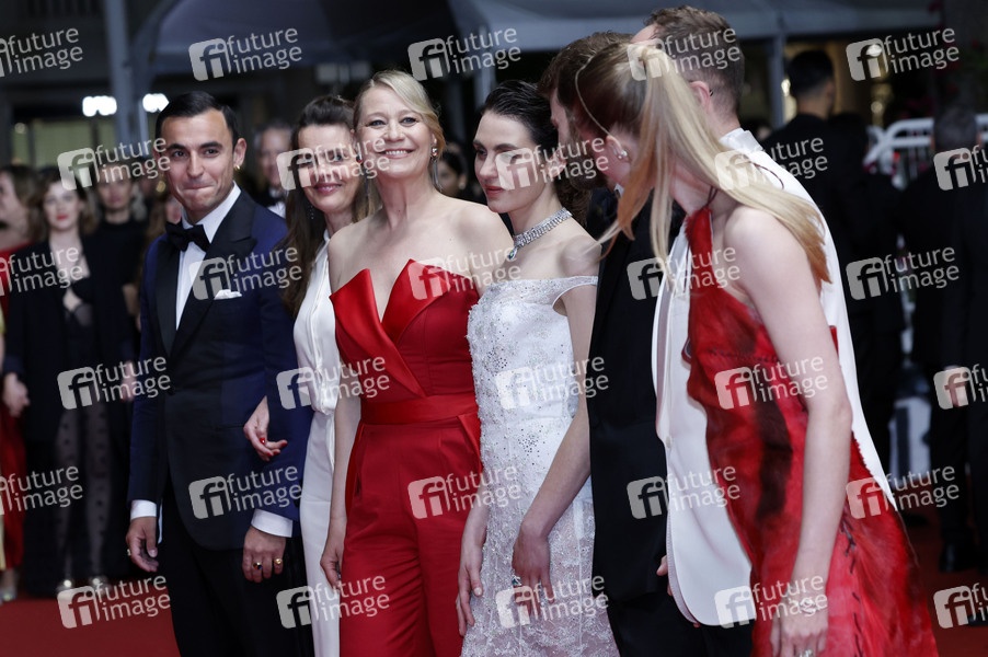 Besir Zeciri, Malene Blenkov, Trine Dyrholm, Vic Carmen Sonne, Magnus Von Horn, Mariusz Wlodarski und Tessa Hoder bei der Premiere des Kinofilms 'Pigen med nålen / The Girl with the Needle' auf dem Festival de Cannes 2024 / 77. Internationale Filmfestspiele von Cannes im Palais des Festivals. Cannes, 15.05.2024