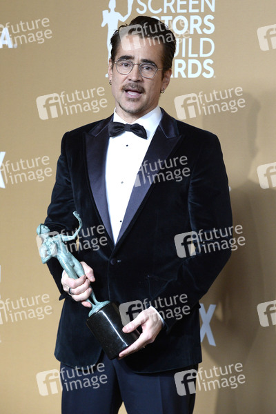 Colin Farrell mit dem Preis für den besten Hauptdarsteller in der Mini-Serie 'The Penguin' beim Preisträger-Photocall der 31. Screen Actors Guild Awards 2025 im Shrine Auditorium and Expo Hall. Los Angeles, 23.02.2025