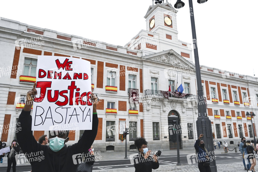 Demonstration zum Tod des Afroamerikaners George Floyd durch einen Polizisten am vergangenen Montag in Minneapolis auf dem Puerta del Sol. Madrid am 31.05.2020