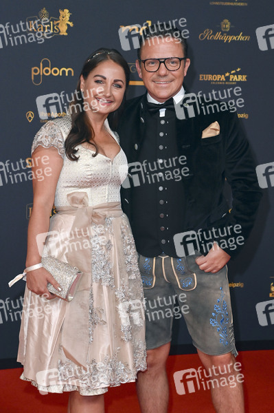 Eva Luginger und Stefan Mross bei der 30. Verleihung der Goldenen Henne 2024 im Studio 3 der Media City des MDR. Leipzig, 15.11.2024