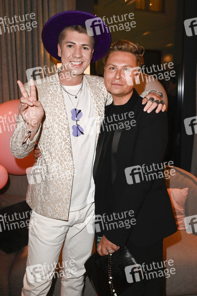 Maximilian Seitz und Dawid Tomaszewski bei der Dawid Tomaszewski Fashion Filmpremiere 'Fantastic Voyage' auf der Fashion Week Berlin Spring/Summer 2022 im SO/ Berlin Das Stue. Berlin, 07.09.2021