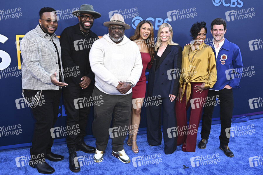 Marcel Spears, Sheaun McKinney, Cedric The Entertainer, Skye Townsend, Beth Behrs, Tichina Arnold und Max Greenfield bei der Präsentaion des CBS Programms 2025-26 in den Paramount Studios. Los Angeles, 07.05.2025