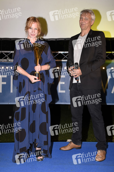 Birgit Minichmayr und Matthias Helwig bei der 3. Verleihung des Hannelore Elsner Preises beim 15. Fünf Seen Filmfestival im Seebad Starnberg. Starnberg, 21.08.2021