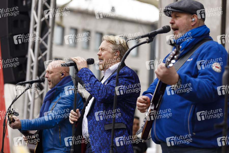 Frank Faust, Sepp Ferner und Burkhard Kaiser von der Band Cöllner beim traditionellen Funkenbiwak auf dem Neumarkt. Köln, 02.03.2019