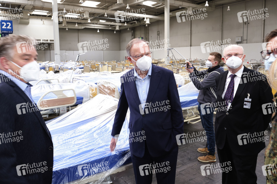 Politiker, SPD, Ministerpräsident von Niedersachsen, Behelfsklinik, Notfallklinik, Betreiber MHH, Notfallkrankenhaus, Behelfskrankenhaus, medizinische Versorgung, Atemschutz, Atemschutzmaske, Virenschutz, Schutzmaske, Schutzmasken, Atemschutzmasken, Mundschutz, Mund-Schutz, Mundschutzpflicht, Mundschutz-Pflicht, Mund-Nase-Schutz, Mund-Nasen-Schutz, MNS, Ausbreitung, Infektionsgefahr der Öffentlichkeit, Lock Down, Lockdown, Öffentlichkeit, Eindämmung, Seucheneindämmung, anstecken, infizieren, Vorbeugung, Prävention, schützen, Schutz, Kontaktverbot, Kontaktverbote, Versammlungsfreiheit, Virus, Viren, Corona, Sars-CoV-2, Covid-19, Coronavirus, Coronaviren, Corona-Virus, Corona-Viren, Ansteckung, Ansteckungsgefahr, Epidemie, Pandemie, Infektion, Infektionen, Symptom, Symptome, Krankheit, infiziert, infizieren, Vorbeugung, Prävention, schützen, Schutz, Notstand, Maßnahmen, Neuansteckungen, Ansteckung, Coronakrise, Corona-Krise, Coronamaßnahmen, Corona-Infektion, Corona-Infektionen, Corona-Schutz, flatten the curve, Notstand, Notstandsgesetze, Notfall, Ausnahmesituation, Ausnahmezustand, Zeitgeschichte, Übertragung, Erreger, PräventionCorona-Regeln, Corona-Maßnahmen