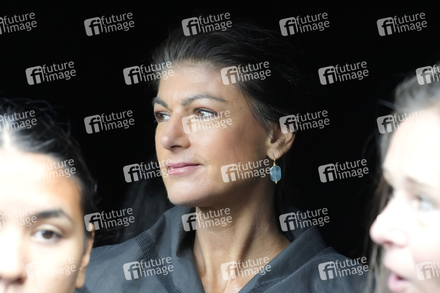 Sahra Wagenknecht bei der Friedensdemonstration unter dem Motto 'Nein zu Krieg und Hochrüstung! Ja zu Frieden und internationaler Solidarität' vor der Siedessäule am Großen Stern. Berlin, 03.10.2024