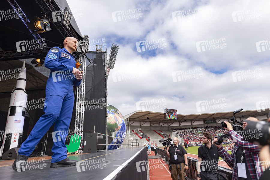 Alexander Gerst bei der DLR-Raumfahrt-Show vor 15.000 Schülerinnen und Schülern im Steigerwaldstadion. Erfurt, 07.06.2019