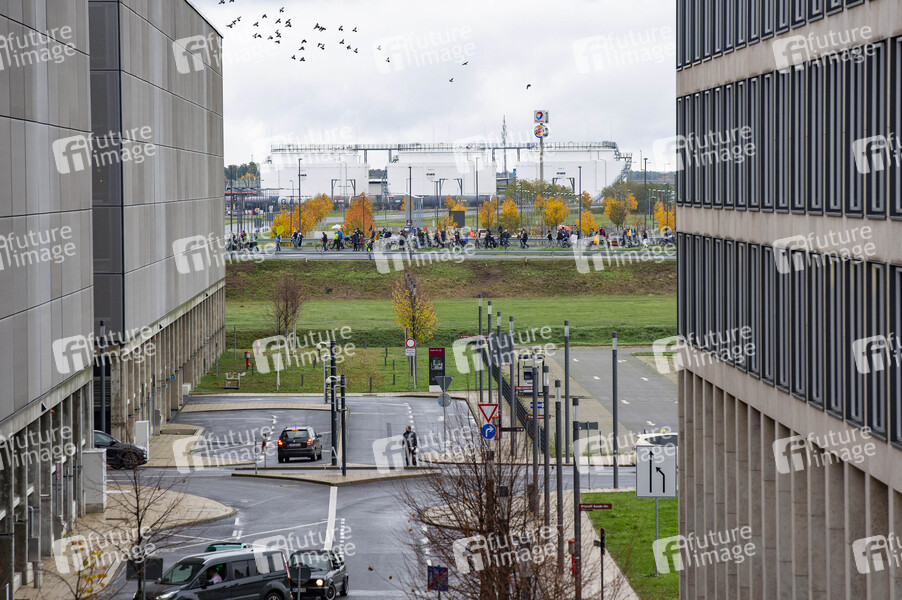 Protestaktionen von Mitgliedern des Bündnisses 'Am Boden bleiben' bei der Eröffnung des Flughafens Berlin-Brandenburg (BER). Schönefeld, 31.10.2020