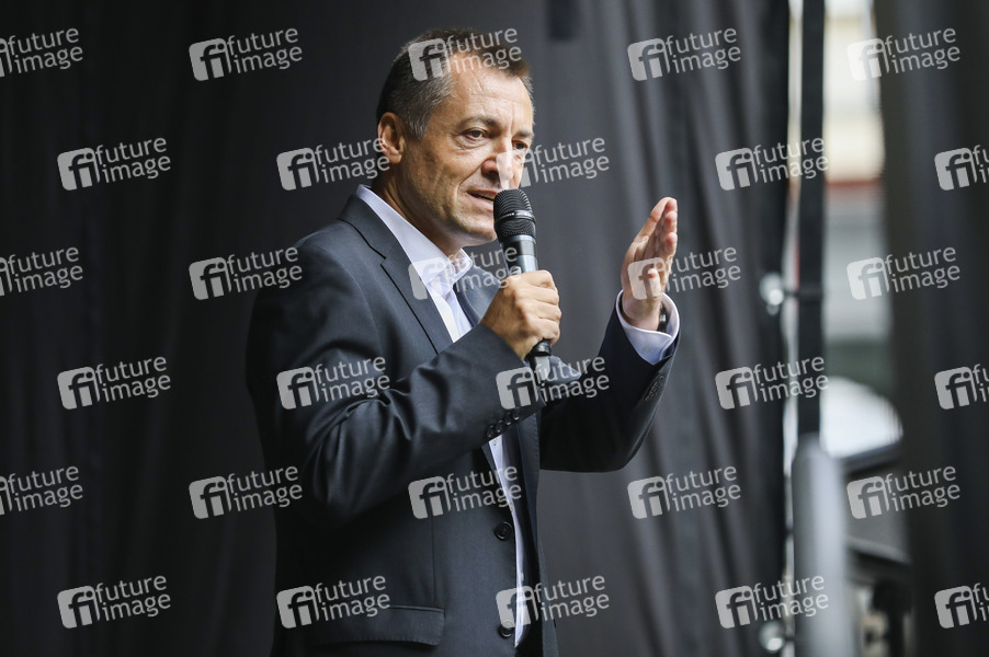 Politik, Rede, Wahl, Wahlkampf, Partei, Wahlkampfveranstaltung, Parteienwerbung, Kampagne, Wahlen, Wahlkampagne, Wahlkampftour, Wahlkampfauftritt, Bundestagswahlkampf, Bundestagswahl, Bundestagswahlen, Kandidat, Politiker, Schatzmeister der FDP Sachsen
