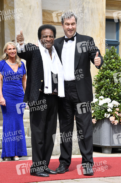 Roberto Blanco und Markus Söder bei der Eröffnung der Richard-Wagner-Festspiele 2024 mit der Premiere von Richard Wagners 'Tristan und Isolde' im Bayreuther Festspielhaus. Bayreuth, 25.07.2024