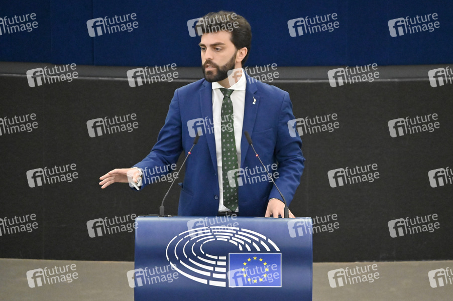 Europäisches Parlament, Plenum, Plenartagung, Plenardebatte, Plenarsitzung, Debatte, Rede, Politik, Strasbourg, Strassburg, Europaparlament, Europa-Politik, EU-Abgeordnete, EU-Parlament, EP, Parlament der Europäischen Union, European Parliament, European Union, Parlamentum Europaeum, MdEP, Mitglied des Europäischen Parlaments, Politiker, Italien, Lega, Vorsitzender der Fraktion Identität und Demokratie, ID