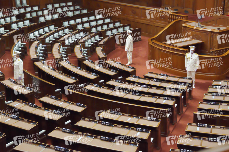 Mitglieder kaiserlichen Garde vor der 203. Diäten-Sitzung im Unterhaus des Parlaments. Tokio, 26.10.2020