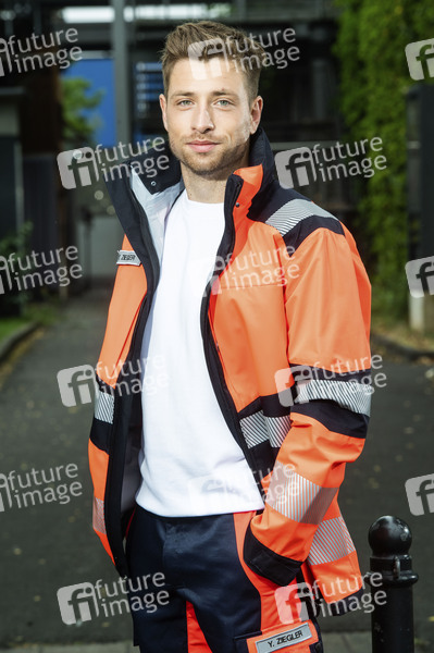 Dominik Flade bei einem Fototermin mit dem dem Deutschen Roten Kreuz e.V. am Set der RTL TV-Serie 'Alles was zählt' in den MMC-Studios in Ossendorf. Der AWZ-Schauspieler bereitet sich mit Hilfe des DRK auf seine Rolle des Rettungssanitäters vor. Köln, 23.06.2021